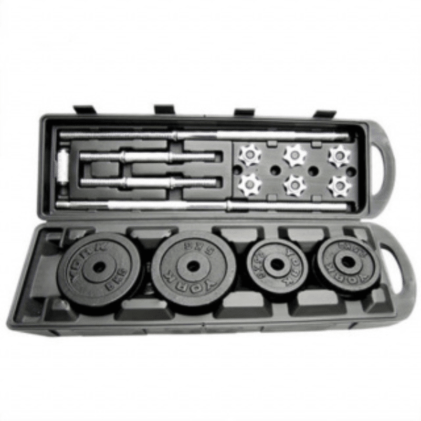 Set odličnih utega od 50 kg pohranjenih u koferu. Ovaj set utega koji sadrži sve što je potrebno da biste ojačali mišiće i oblikovali tijelo iz snova.